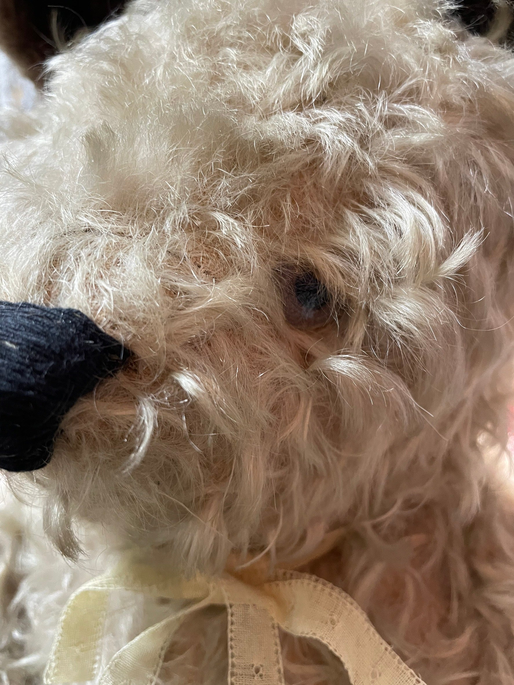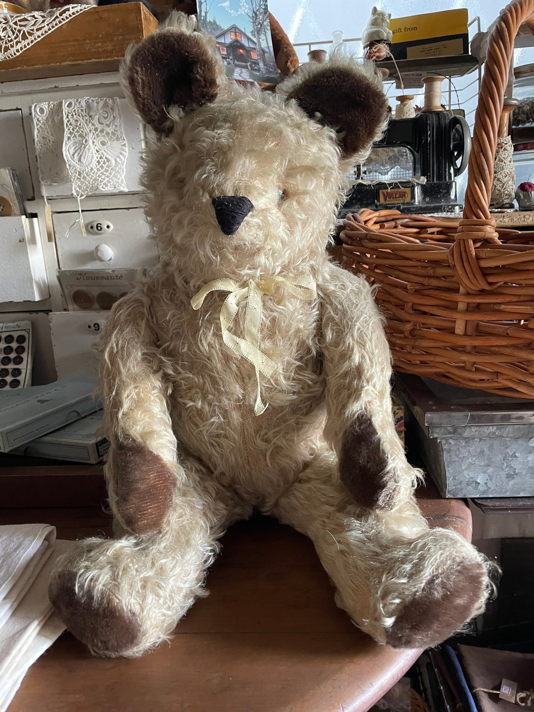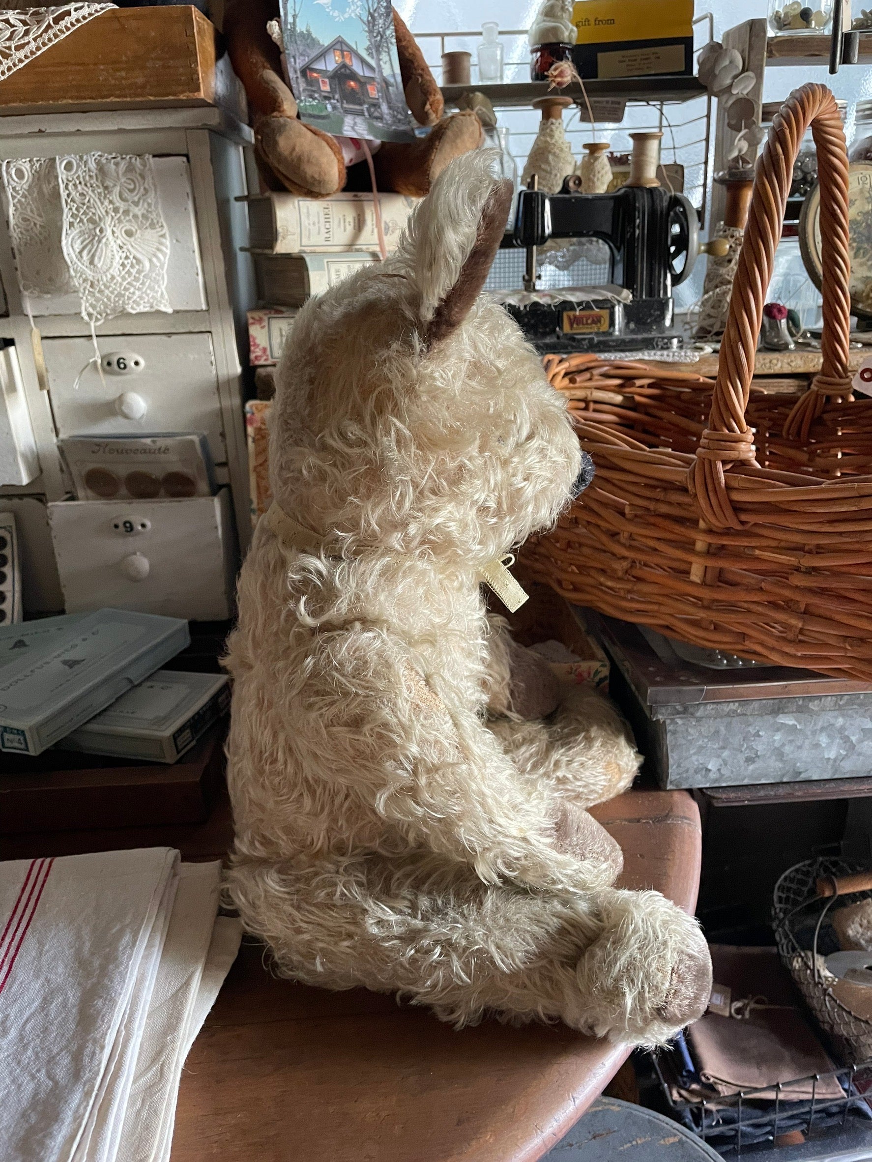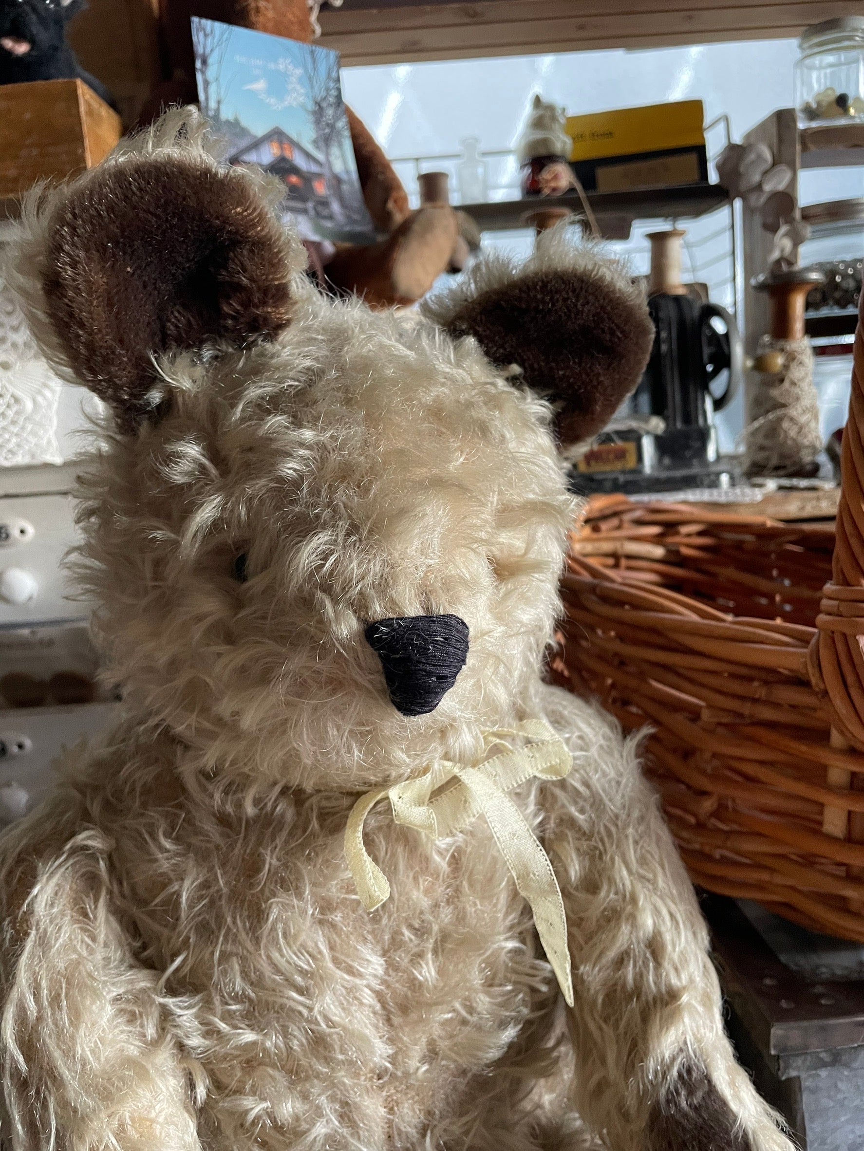 南仏で出会ったアンティークベア全長約55センチ、お座りして約40センチとても状態の良いベアちゃんです左目が欠けていますがクルクル毛並みで隠れて気になりません