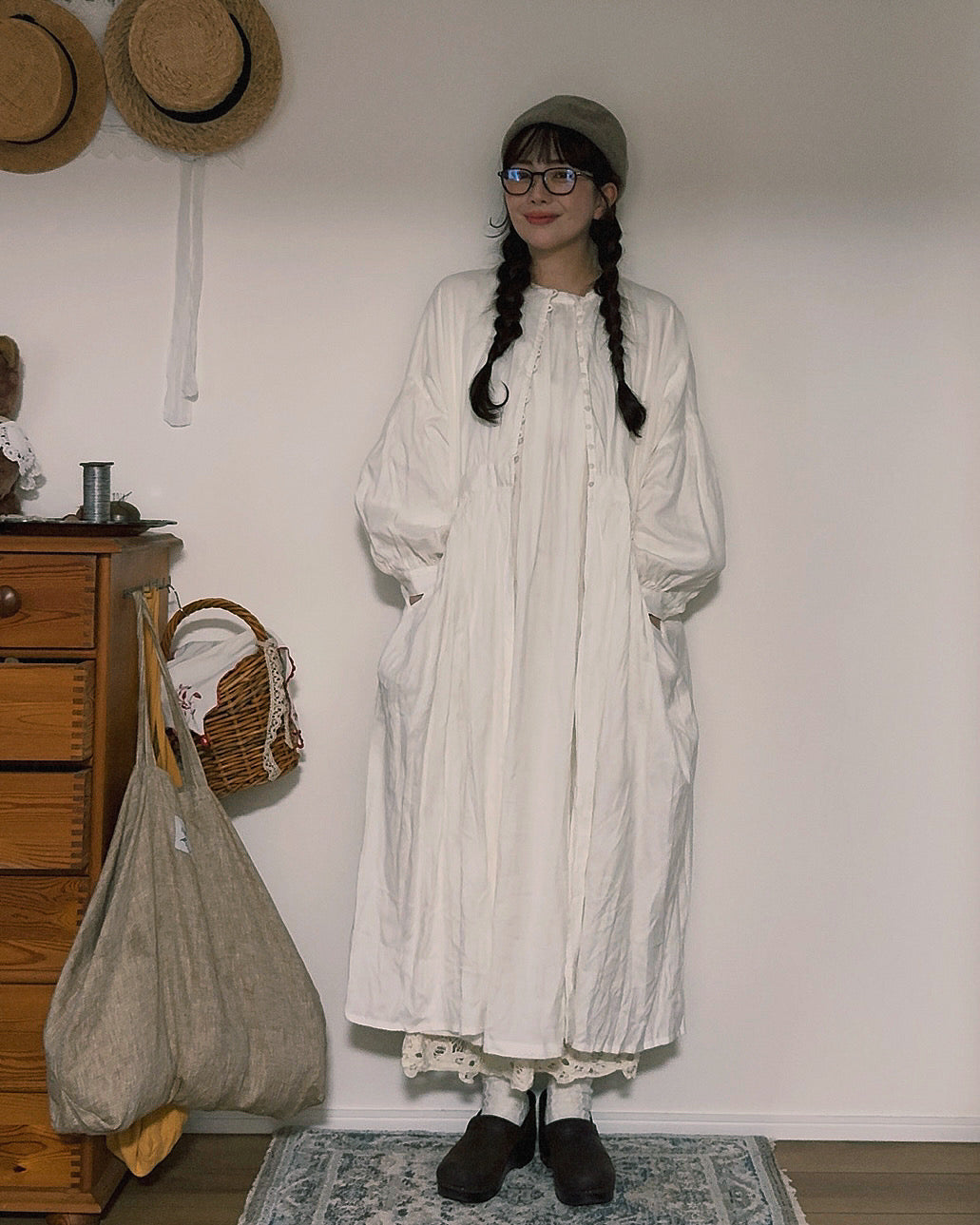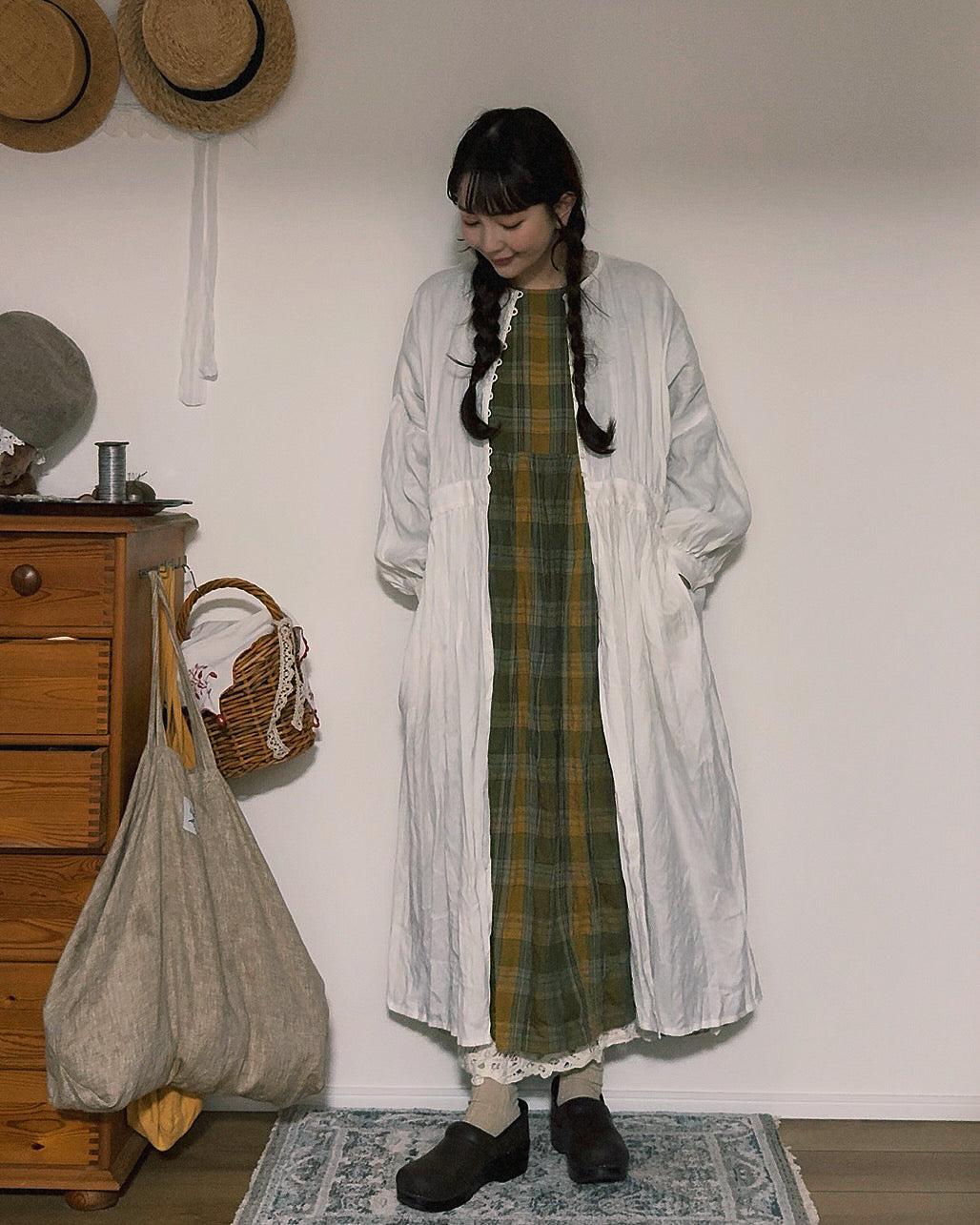 前開きデザインで、リネンワンピースやボトムスとのレイヤードスタイルはもちろん、羽織りとしてもお使いいただける優れもの。