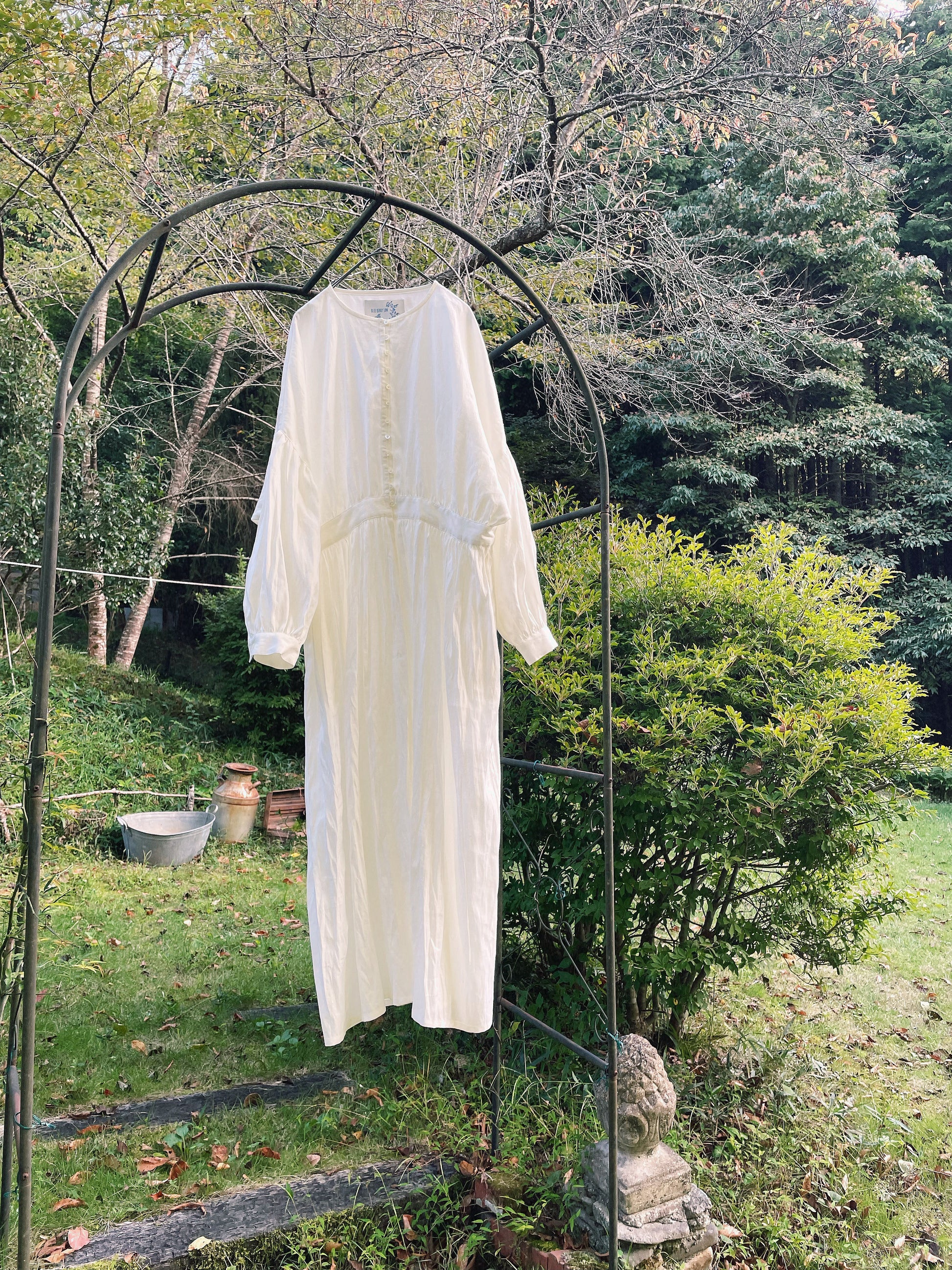ウエストの上下にギャザーをふんだんに寄せ、贅沢に仕上げたオープンギャザードレス。